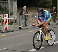 Gustav Larsson com o maillot da Suécia de contrarrelógio.