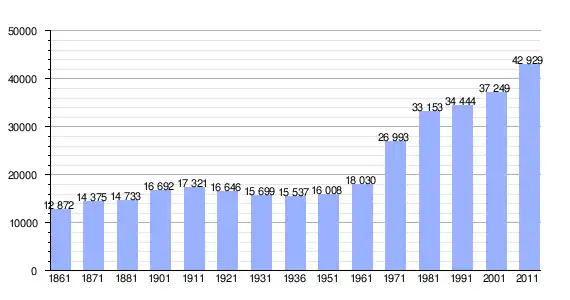 | Variação demográfica do município entre 1861 e 2011[3] |