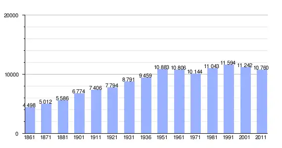 | Variação demográfica do município entre 1861 e 2011[3] |