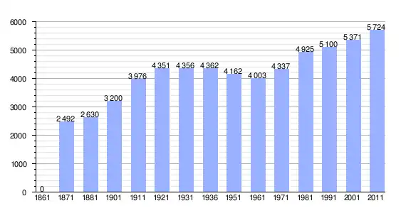 | Variação demográfica do município entre 1861 e 2011[3] |