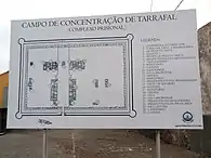 O Campo de Concentração do Tarrafal foi estabelecido em 1936 pelo Decreto 26 539 de 23 de abril de 1936, no contexto da reorganização do sistema prisional do Estado Novo, com o objetivo de encarcerar presos políticos e sociais.[10][4] A localização foi escolhida de forma estratégica, tanto por ser perfeita para que os testemunhos não viessem a público, tanto por ter um clima insalubre, com pouca água potável, e muitos mosquitos em épocas chuvosas, que facilitavam o aparecimento de doenças e do qual morreram muitos prisioneiros.[11][4] A construção foi incumbência do Ministério das Obras Públicas e Telecomunicações, e o projeto foi elaborado por Cottinelli Telmo, com o nome de "Colónia Penal de Cabo Verde".[10][4][12] Cândido de Oliveira afirma que não foi difundido o verdadeiro objetivo da construção por receio da opinião pública portuguesa e internacional.[10] De acordo com o "Dossier do Tarrafal" da Editorial "Avante!", a maioria dos guardas eram membros da PSP ligados à PVDE e à Legião Portuguesa.[13]