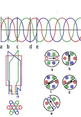 Se cada grupo de bobinas tem um pequeno número delas, o campo magnético criado terá uma onda quadrada. Para aproximar uma sinusóide que é feito é para aumentar o número de espiras em cada grupo (de fase), e distribui -los tanto quanto possível no estator. 1