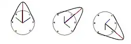 Três posições de rotação, com a distribuição de energia do campo resultante.