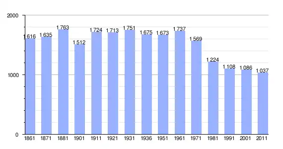 | Variação demográfica do município entre 1861 e 2011[3] |