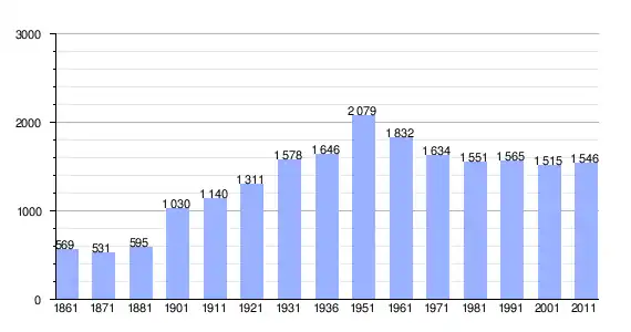 | Variação demográfica do município entre 1861 e 2011[3] |
