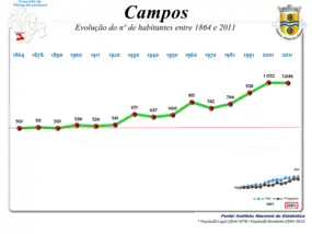 | População da freguesia de Campos (1864 – 2011) [2] | ||||||||||||||