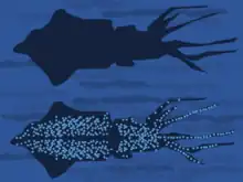 A contra-iluminação é camuflada usando a produção de luz para se misturar contra um fundo iluminado. No mar, a luz desce da superfície; portanto, quando os animais marinhos são vistos de baixo, eles parecem mais escuros do que o fundo. Algumas espécies de cefalópodes, como a abralia veranyi e a lula vaga-lume, produzem luz nos fotóforos na parte de baixo para combinar com o fundo.[11] A bioluminescência é comum entre os animais marinhos, portanto a contra-iluminação pode ser generalizada, embora a luz tenha outras funções, incluindo atrair presas e sinalização.[14][15]
