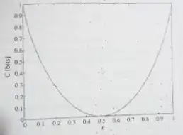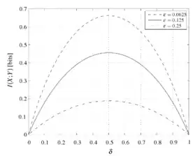 A figura 1 mostra o gráfico da informação mútua versus se relacionando com três diferentes valores da probabilidade de erro ε. Como esperado, o valor de pico de cada curva ocorre quando = 1/2.