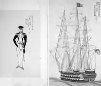 Em 1846, o Capitão James Biddle da Marinha dos Estados Unidos, ancorou dois navios de guerra, o U.S.S. Columbus e o U.S.S. Vincennesno, no canal de Uraga, no delta da baía de Tóquio. Este foi um primeiro passo no que acabou por ser um esforço inútil para uma relação comercial aberta entre Japão e Estados Unidos.[2]