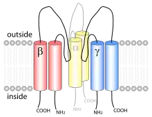 O canal é composto por três subunidades diferentes: α, β, γ.[2] A estequiometria destas subunidades ainda está para ser verificada, mas é provável que seja uma proteína heterotrimérica[3] [4]Cada uma das subunidades é composta por duas hélices transmembranares e um laço extracelular. Os terminais carboxi e amino de todos os polipéptidos estão localizados no citosol.