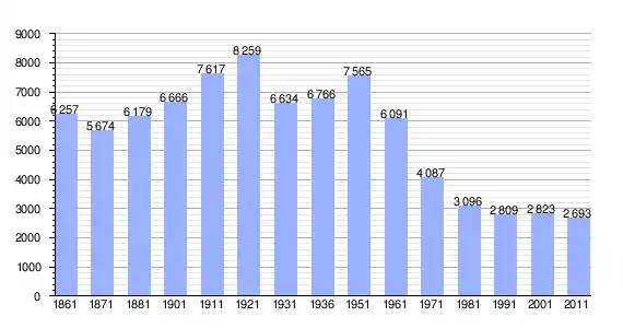 | Variação demográfica do município entre 1861 e 2011[3] |