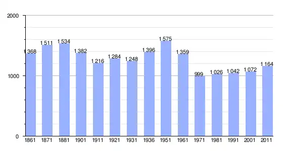 | Variação demográfica do município entre 1861 e 2011[3] |