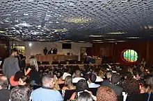 ![]() Jorge Beltrão no julgamento de 2018, acompanhado por um policial | |