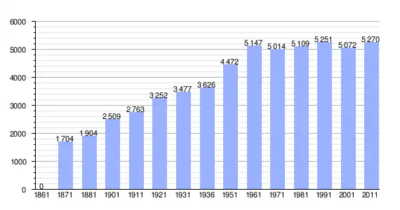 | Variação demográfica do município entre 1861 e 2011[3] |