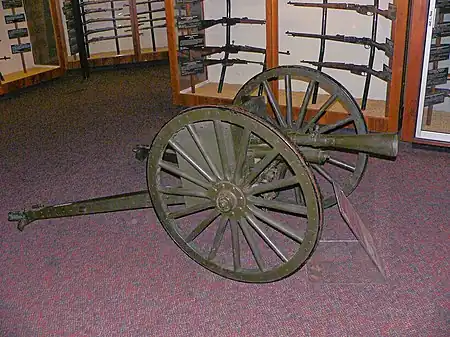 As armas eram montadas em um tripé, ao qual rodas podiam ser presas para transporte. As armas também podiam ser transportadas por quatro soldados, depois de serem divididas em duas cargas: a arma de 47 kg e o mecanismo de recuo e as trilhas de 38 kg, cada uma das quais poderia ser transportada por dois soldados.[2] Alguns foram equipados com um escudo de arma. O bloco de culatra da arma era essencialmente uma versão menor daquela montada no conhecido canhão francês 75.[3]