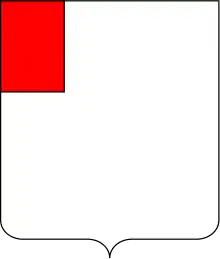 - Cantão sinistro do chefe, o canto superior direito da figura (sinistro, ou esquerdo, para o portador do escudo).