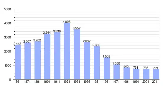 | Variação demográfica do município entre 1861 e 2011[3] |