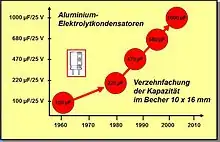 Todos os capacitores eletrolíticos têm uma vantagem especial. Como a tensão de conformação define a espessura da camada de óxido, a prova de tensão do último capacitor eletrolítico pode ser produzida de maneira muito simples para o valor nominal desejado. Portanto, o volume de um capacitor é definido pelo produto de capacitância e tensão, o chamado "produto CV".
