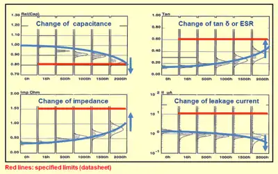 - Rubycon, LIFE OF ALUMINUM ELECTROLYTIC CAPACITORS, S. 9 (PDF)