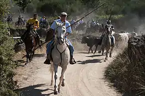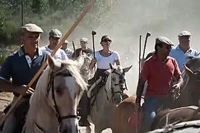 Começa um verdadeiro êxodo nos campos próximos da fronteira espanhola. Objectivo: ir buscar os touros, que são alugados para o evento. Os cavaleiros experientes demonstram as suas habilidades, na arte da cavalaria e na escolta dos touros até à praça da aldeia (encerro). O tempo da escolta, varia com a habilidade dos cavaleiros e a reacção dos touros.