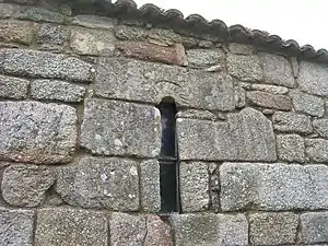 No muro meridional abre-se um estreito vão em forma de seteira com um amplo afunilamento para o interior apresentando um arco decorado com um junquilho sogueado[3], arco mutilado que na atualidade apresenta forma de meio ponto.