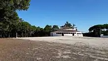 É redonda, caiada como um pombal, acompanhada, a sul, de uma alpendrada (grande alpendre)[1].