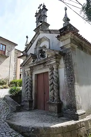 É uma construção de estilo híbrido, pois junta elementos do final do renascimento maneirista e do barroco. O tímpano triangular da portaria é um elemento clássico de arquitectura grega e romana, reaparecido na arquitectura renascentista dos século XV e XVI. As suas colunas são características do barroco. Nela sempre se efectuou a bênção do Pão no dia do seu orago.