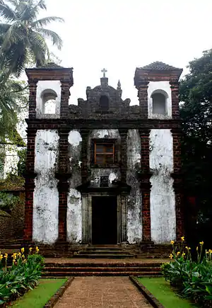 Em 1510, as tropas de Afonso de Albuquerque penetraram na cidade de Goa.[1] Uma capela foi erguida junto à porta da muralha de Goa muçulmana, por onde os portugueses invadiram.[1] Essa capela situava-se perto do local do Hospital Real, que se erguia a norte do Convento de São Francisco próximo do Arsenal e que não sobreviveu aos nossos dias, ou seja, respectivamente entre o local de armas e o centro da vida interior e mística.[1][2]