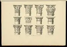 Na prática arquitetônica romana, os capitéis são tratados brevemente em seu devido contexto entre os detalhamentos próprios de cada uma das "Ordens", no único livro completo de arquitetura que sobreviveu desde os tempos clássicos, o De architectura, de Marco Vitrúvio Polião, mais conhecido como Vitrúvio, dedicado ao imperador Augusto. As várias ordens são discutidas nos livros iii e iv de Vitrúvio. Descreve a prática romana de maneira prática. Ele conta alguns contos sobre a invenção de cada uma das ordens, mas não dá um conjunto rígido e rápido de regras canônicas para a execução de capiteis.[3]