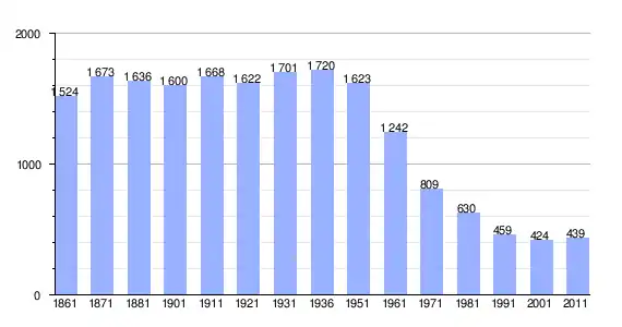 | Variação demográfica do município entre 1861 e 2011[3] |