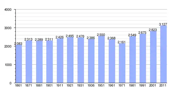 | Variação demográfica do município entre 1861 e 2011[3] |