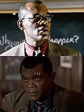 O futuro diretor da S.H.I.E.L.D., que na época era um burocrata de baixo escalão.[25][26] Fury aparece sem o seu tapa-olho, já que o filme é ambientado na década de 1990, antes dele perder seu olho.[27] Feige explicou que Danvers é o primeiro super-herói que Fury encontrou,[28] o que o coloca em um caminho para trabalhar com heróis nos futuros filmes do UCM.[29] Jackson descreveu Fury neste ponto como um burocrata, que ainda não se tornou cínico em relação à burocracia e que aprende no filme que existem seres superpoderosos que poderiam ajudar a S.H.I.E.L.D.[30] Jackson acrescentou que confiar em Danvers desempenha um papel fundamental em seu desenvolvimento, à medida que se tornam "compatriotas" ao longo do filme.[31] Jackson foi rejuvenescido digitalmente em 25 anos, a primeira vez que a Marvel fez isso para um filme inteiro.[32] - Ben Mendelsohn como Talos / Keller:
