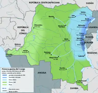 As tropas da AFDL, associadas com os soldados ruandeses do Exército Patriótico de Ruanda (EPR), são estimados em 10 mil homens, incluindo um grande número de crianças-soldados, os kadogos. [1]