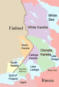 No início da Segunda Guerra Mundial, em 1939, a União Soviética atacou a Finlândia, dando início à Guerra de Inverno. O Tratado de Moscou, assinado em 1940, entregou uma grande parte da Carélia finlandesa à União Soviética, e mais de 400 000 pessoas tiveram que ser realocadas dentro da Finlândia. Durante a Guerra de Continuação de 1941-1944, a Finlândia retomou o território cedido em 1940, e também invadiu e ocupou grande parte da Carélia Oriental. A Finlândia foi forçada a sair dessas regiões em 1944. Após a guerra, a expansão soviética causou considerável amargura na Finlândia, que perdeu sua quarta maior cidade, Viipuri, seu coração industrial ao longo do rio Vuoksi, a porção oriental do canal Saimaa que ligava a Finlândia central ao Golfo da Finlândia, e o acesso às águas pesqueiras do Lago Ladoga (Finlandês: Laatokka). Um oitavo de seus cidadãos se tornaram refugiados sem chance de retorno. Toda a população das áreas cedidas à União Soviética foi evacuada e reassentada em outras partes da Finlândia. Os atuais habitantes das antigas partes finlandesas da Rússia, incluindo a cidade de Vyborg/Viipuri e o istmo da Carélia, são imigrantes do pós-guerra ou seus descendentes.[2][3]
