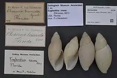 Ilustração de E. rosea (Férussac, 1821) retirada de Binney, Amos (1857) The Terrestrial Air-Breathing Mollusks of the United States and Adjacent Territories of North America, Vol. 3. Bull. Mus. Comp. Zool, Harvard Univ. Plate 59. | |||||||||||||||||||||||||||