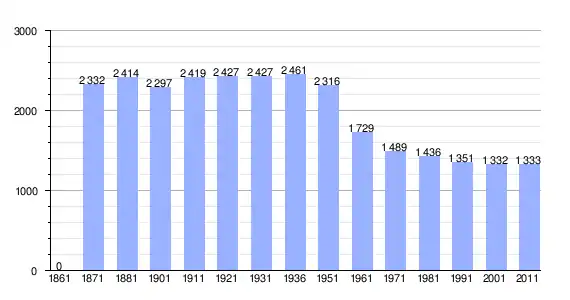 | Variação demográfica do município entre 1861 e 2011[3] |