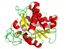As carboxipeptidases pertencem as exopeptidases e podem ser encontradas nas formas A e B dependendo do mecanismo de atuação das mesmas.[1] Elas são responsáveis por catalisarem a remoção de ácidos carboxílicos terminais em proteínas. A carboxipeptidase A bovina foi a terceira proteína a ter sua estrutura tridimensional resolvida. Em sua estrutura o sítio ativo do zinco está ligado aos aminonácidos His- 69, Glu- 72, His- 196 e a uma molécula de água e geometria resultante é tetraédrica.[2]