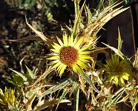 Os seus nomes comuns são cardo-asnil ou carlina.[2]