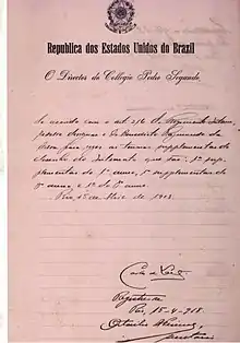 Na sessão da congregação da casa de 2 de maio de 1890, Laet requereu fosse feito um apelo ao governo republicano para conservar-se o nome antigo do estabelecimento. Mas a grande maioria dos professores era então republicana. No dia seguinte, o Diário Oficial trazia a demissão de Carlos de Laet. Pouco depois, Benjamin Constant, o primeiro ministro da Educação do novo governo, conseguia transformar o ato de demissão em aposentadoria. Só no governo de Venceslau Brás foi ele reconduzido ao seu posto no magistério secundário.