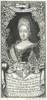 - Este artigo foi inicialmente traduzido, total ou parcialmente, do artigo da Wikipédia em inglês cujo título é «Countess Charlotte Johanna of Waldeck-Wildungen», especificamente desta versão.