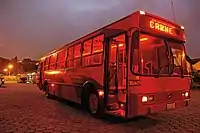 O ônibus-instalação fez parte do programa educativo Arte-Passageira do Centro Universitário Maria Antonia da USP, em São Paulo, durante o ano de 2006. O programa foi organizado pela equipe de educadores, que convidavam artistas para realizar intervenções em um ônibus. Este veículo seria o centro de atividades artísticas em escolas públicas de São Paulo. Para este programa, a artista conectou a ideia de carne ao ônibus. Para isto o veículo-máquina foi coberto inteiramente com muitas camadas de adesivo em vários tons de vermelho.. Mesmo com todas as peculiaridades de um ônibus, o veículo virou uma enorme “massa esponjosa” vermelha, na qual, dentro e fora, transparência e opacidade, porta, janela, capota, chão, teto e banco constituem uma unidade. No letreiro luminoso, indicativo do seu destino, lia-se a palavra CARNE. |