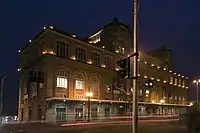 Sesc 24 de maio, São Paulo, Brasil. "O Sesc 24 de Maio pode ser comparado a uma grande escavação a céu aberto, conduzida pela arqueologia clínica de Paulo Mendes da Rocha: a exposição de uma conexão nevrálgica do velho centro de São Paulo. O letreiro luminoso GRANDE HOTEL, instalado na praça de entrada do edifício, combina a descoberta de um sítio perdido com a evocação de uma promessa – a da cidade como o lugar maior de seus habitantes."[15] |