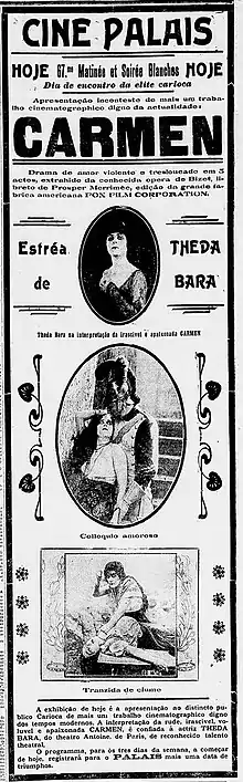 Propaganda do filme Carmen (Carmen) na revista Correio da Manhã (RJ) no Brasil.