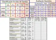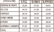Tabela de pontuação dos desfiles de escolas de samba de Figueira da Foz, Portugal.