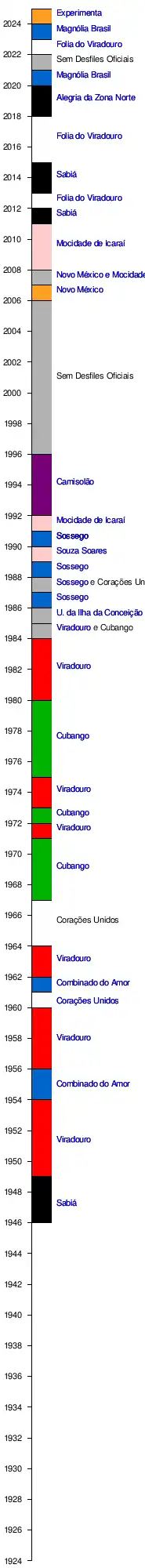 | Não houve desfiles entre 1996 e 2005 | ||||