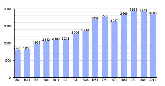 | Variação demográfica do município entre 1861 e 2011[3] |