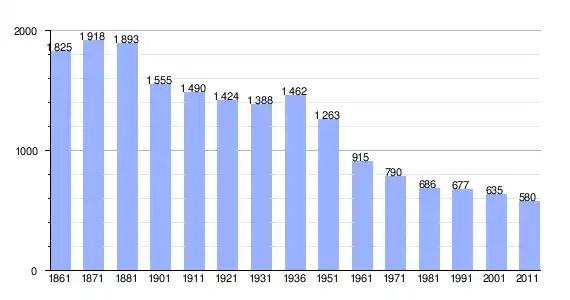 | Variação demográfica do município entre 1861 e 2011[1] |