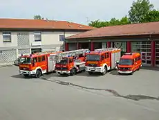 Os carros são equipados com sirenes, giroflex e com pinturas especiais para identificação da população no trânsito. A cor mais usada é normalmente o vermelho (por ex. RAL 3000) respect. vermelho brilhante (por ex. RAL 3024), às vezes também amarelo (como no Reino Unido). Normalmente os carros são guardados em quartéis do corpo de bombeiros.