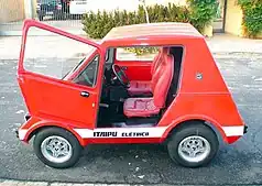 O Gurgel Itaipu foi um carro elétrico desenvolvido no Brasil pelo empresário João Gurgel, que era um pioneiro na engenharia, e criou uma marca de automóveis cem por cento brasileira.[23] Em 1974, o primeiro protótipo do Itaipu foi apresentado, ele tinha capacidade para apenas duas pessoas. Seu peso era de 460Kg, sendo 320Kg concentrado em baterias de 3,2KW entregando um equivalente a 4,2 CV.[24]