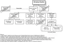 O Cartel de Sinaloa também fez alianças com outras gangues nas regiões em que opera. Eles incluem Los Ántrax (unidade executora), Grupo Flechas,[107][108] Los Cabrera (ala armada),[109][110] Los Rusos (facção Zambada),[111] Los Chapitos (facção Guzmán),[112] Crips, Los Mexicles, Los Salazares (célula de tráfico em Sonora),[113][114] La Barredora, Los Rastrojos, Paraguaná Cartel, Los Cachiros, Los Choneros, Exército de Libertação Nacional,[10] Organização Herrera,[60] Organização Fernando Pineda-Jimenez,[115] Cartel Sonora, Cartel Colima, Gente Nueva (ala armada), Cártel del Noreste (em Zacatecas), Cárteles Unidos, La Familia Michoacana, Los Dámasos (ala armada), Cartel Independiente de Nuevo León,[116] Máfia mexicana, Máfia marroquina, Máfia sérvia,[117][118][119] Cartel Kinahan, Independent Soldiers,[120][121] Máfia irlandesa, Hells Angels, Máfia chechena, Máfia albanesa,[122] Máfia romena,[123] a 'Ndrangheta.[124] e dissidentes da FARC.[125]